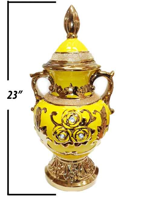 Potiche Para Oshun 23"X12".Decorada Con Piedras Y Acentos Dorados.